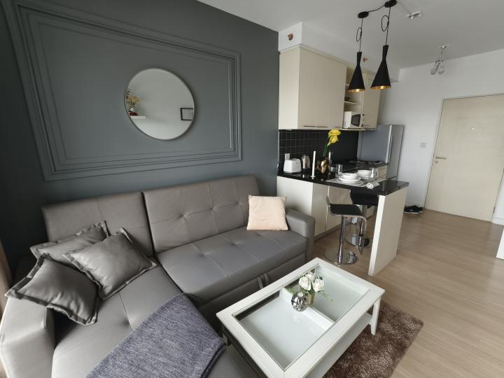 รายละเอียดเบื้องต้น : รายละเอียดห้อง - ขนาด 42 ตรม. - ชั้น 22 - รูปแบบห้อง 1ห้องนอน 1ห้องน้ำ