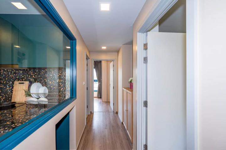 รายละเอียดเบื้องต้น : รายละเอียดห้อง - ขนาด 58 ตรม. - ชั้น 4 อาคาร A - รูปแบบห้อง 2ห้องนอน 2ห้องน้ำ