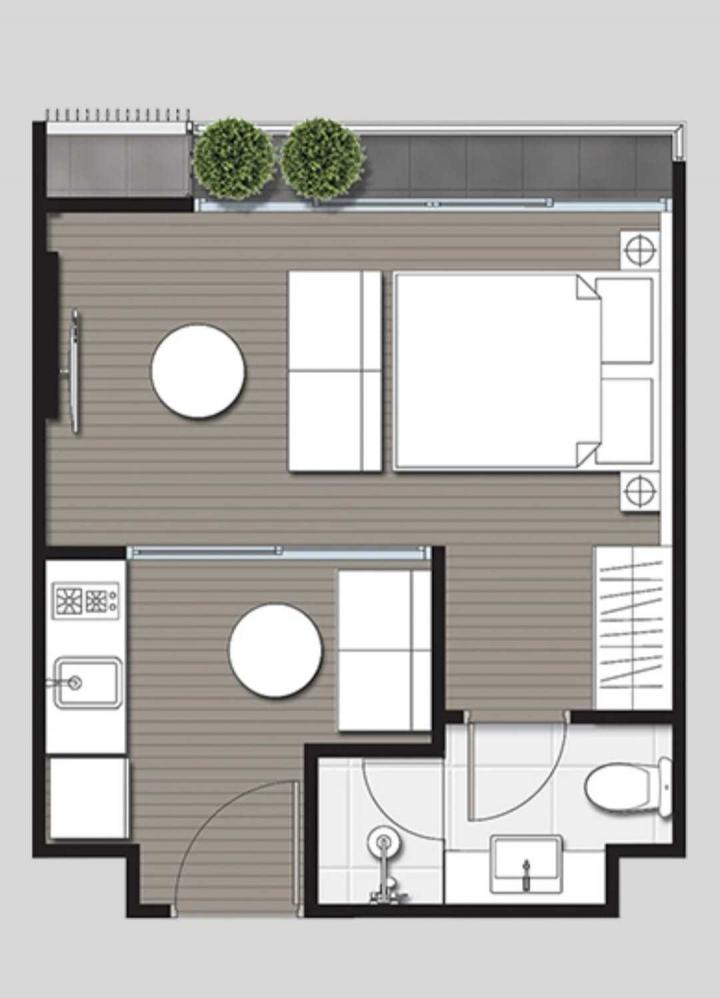 ขนาด : 28.6 ตรม. ประเภท 1ห้องนอน 1ห้องน้ำ