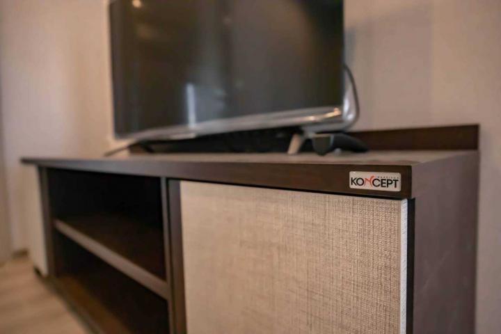 6. ตู้วางทีวี ขนาดใหญ่ ยี่ห้อ Koncept. พร้อม สมาร์ททีวี ชาร์ป ขนาด 50 นิ้ว