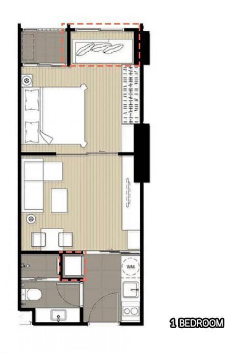 - รูปแบบห้อง 1ห้องนอน 1ห้องน้ำ
