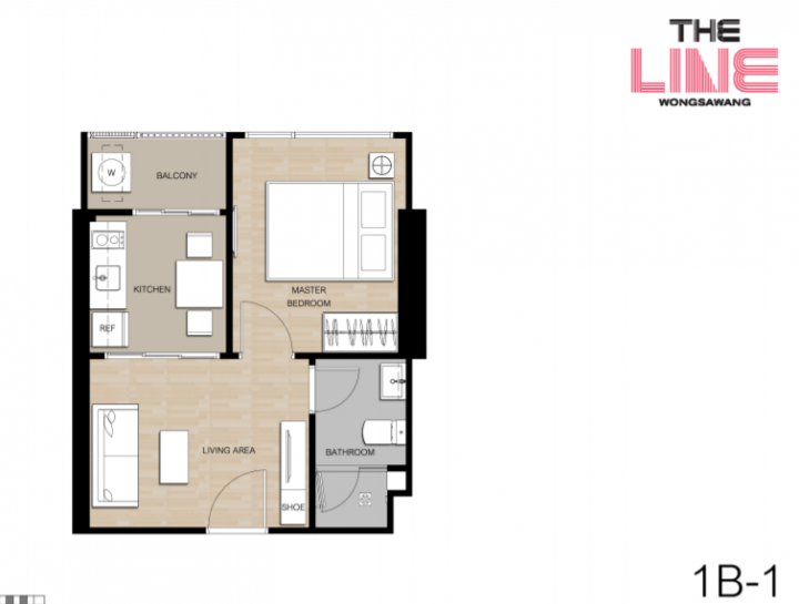 - รูปแบบห้อง 1ห้องนอน 1ห้องน้ำ