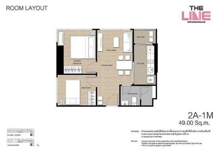 รายละเอียดเบื้องต้น : รายละเอียดห้อง - ขนาด 49 ตรม. - ชั้น 22 - รูปแบบห้อง 2ห้องนอน 1ห้องน้ำ