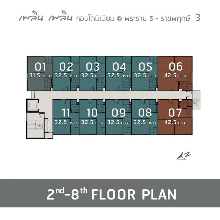 รายละเอียดเบื้องต้น : รายละเอียดห้อง - ขนาด 33 ตรม. - ชั้น 2 - รูปแบบห้อง 1ห้องนอน 1ห้องน้ำ