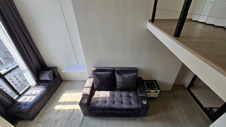 รายละเอียดเบื้องต้น : รายละเอียดห้อง - ขนาด 35 ตรม. - ชั้น 12A - รูปแบบห้อง Duplex 1ห้องนอน 1ห้องน้ำ