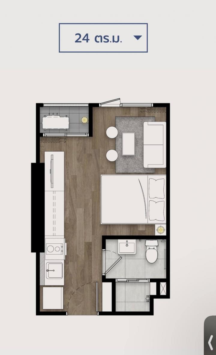 รายละเอียดเบื้องต้น : - ขนาด24 ตรม. - ชั้น 12A อาคาร B - รูปแบบห้อง 1ห้องนอน 1ห้องน้ำ