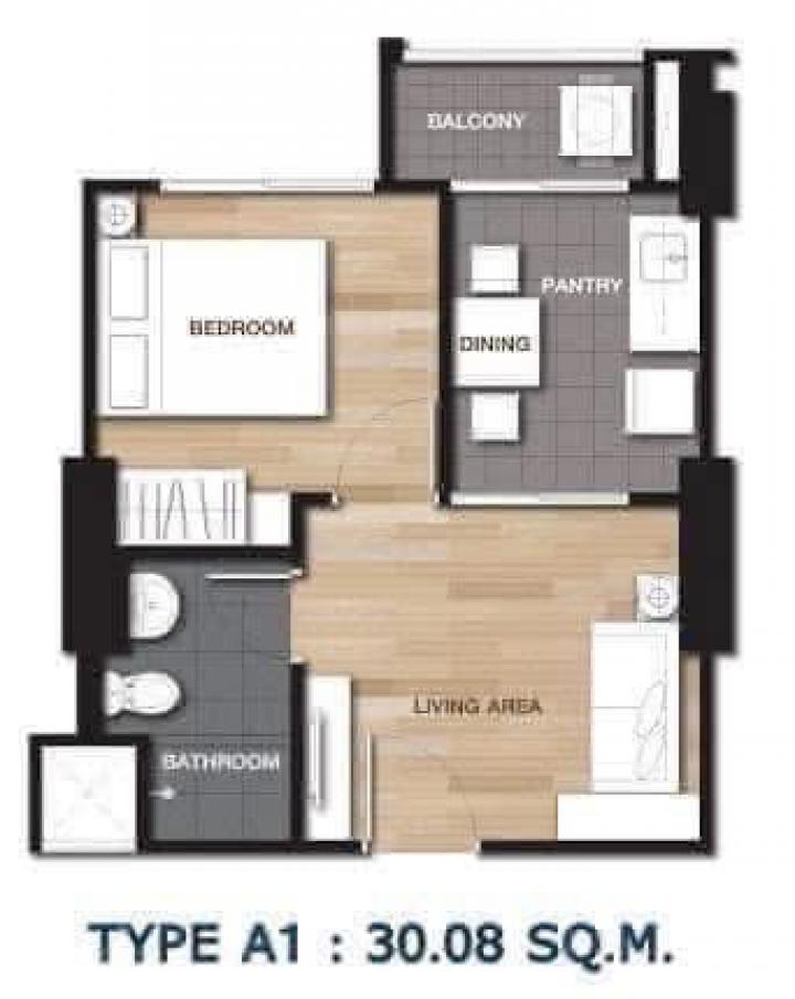 - รูปแบบห้อง 1ห้องนอน 1ห้องน้ำ