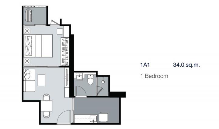 - รูปแบบห้อง 1ห้องนอน 1ห้องน้ำ