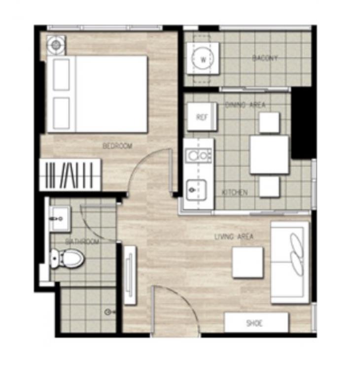 - รูปแบบห้อง 1ห้องนอน 1ห้องน้ำ