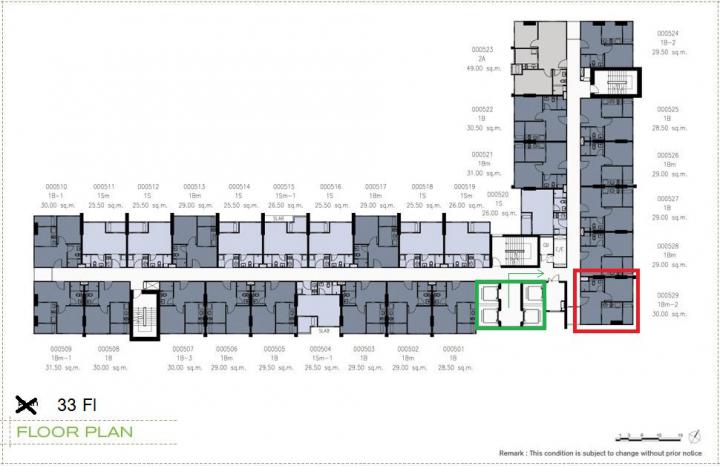 รายละเอียดเบื้องต้น : รายละเอียดห้อง - ขนาด 30 ตรม. - ชั้น 33 - รูปแบบห้อง 1ห้องนอน 1ห้องน้ำ