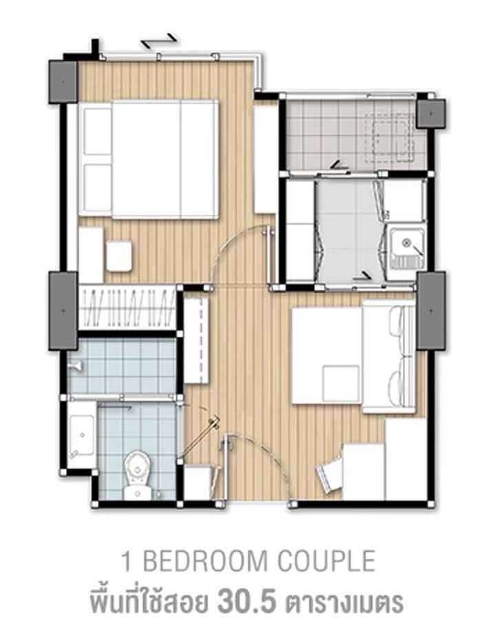 ขนาด : 30.5 ตรม. ประเภท 1ห้องนอน 1ห้องน้ำ