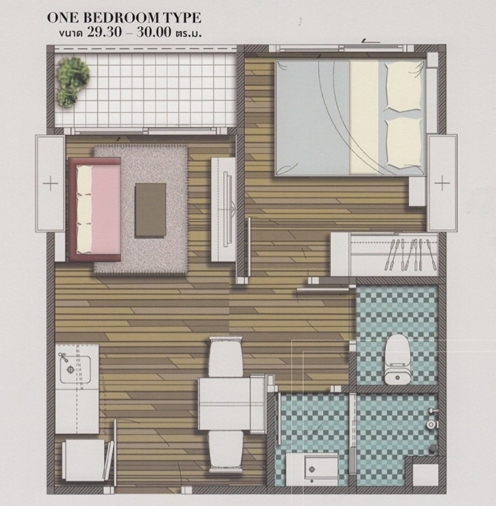ขนาด 30.29 ตรม. 1 ห้องนอน 1 ห้องน้ำ 1 ห้องนั่งเล่น