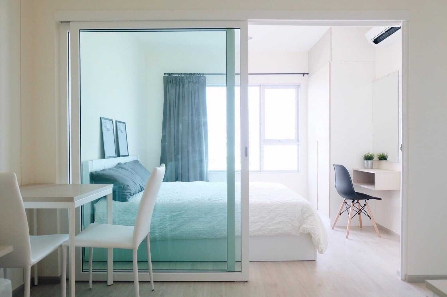 -กระจกกั้นห้องนอน และห้องครัวแยก